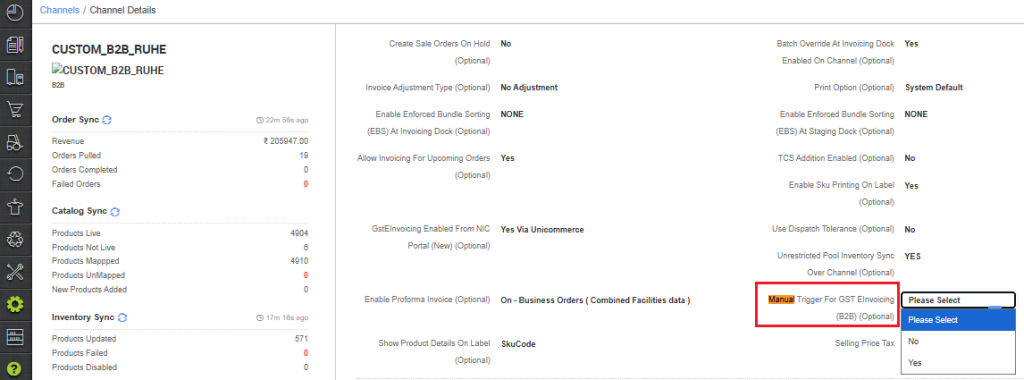 This setting is only applicable, in case Channel config – GstEInvoicing Enabled from NIC Portal (New) is enabled