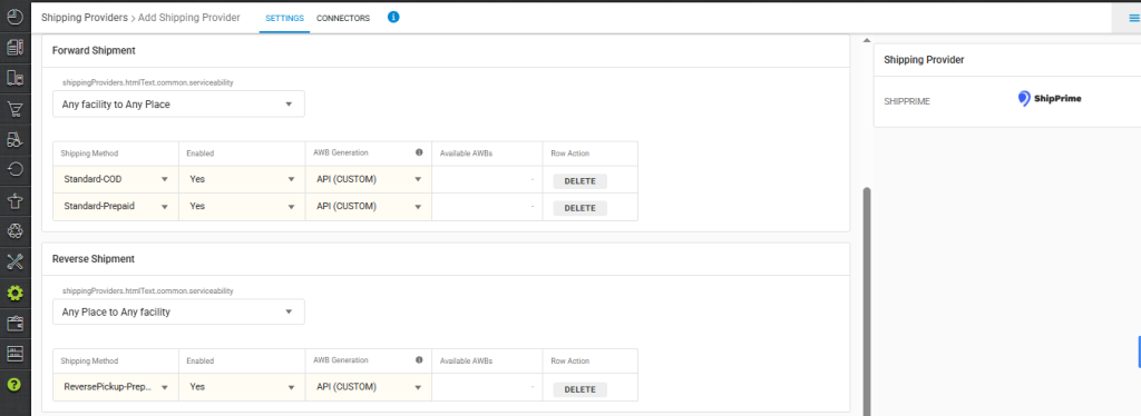 Note: Instead of adding an individual shipping company integrated with Shipprime separately, the system will allocate the correct shipping company through a single Shipprime added in Uniware based on the prioritfy set on Shipprime seller panel which is as per the shipping matrices like Rating, Pricing or Delivery time.