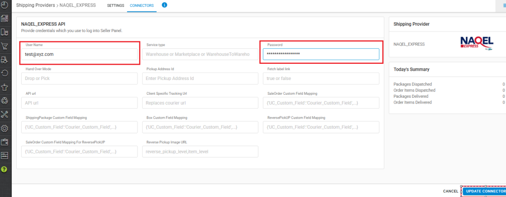7- Click on UPDATE CONNECTOR button to authenticate and connect the connectors and finish the integration process.