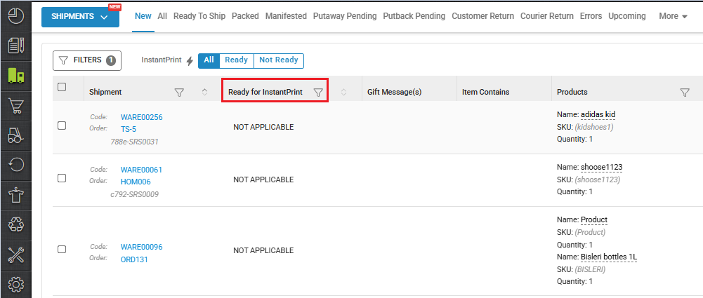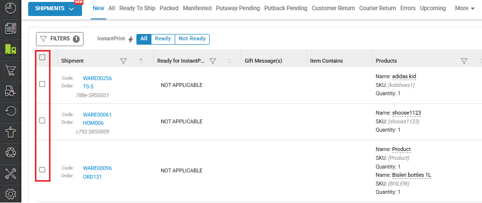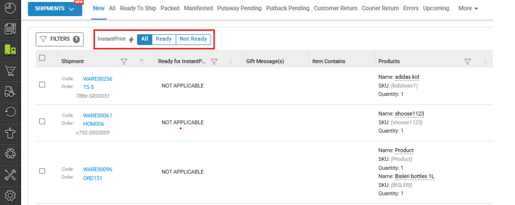 Note: In picklist, you can not perform any actions for Instant Print. You can only view the shipments under the Instant Print filter.