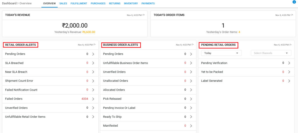 In a warehouse where a seller handles both retail and bulk business orders, staff often struggled to identify which shipments required quick dispatch for individual customers and which needed bulk packing for business clients. With the new separate tabs, the operations team can now view Retail Order Alerts to prioritize B2C orders for same-day delivery, while using Business Order Alerts to plan packaging and dispatch for B2B consignments. The Pending Retail Orders tab further helps them ensure no individual customer orders are left unattended, improving overall efficiency and fulfillment accuracy.